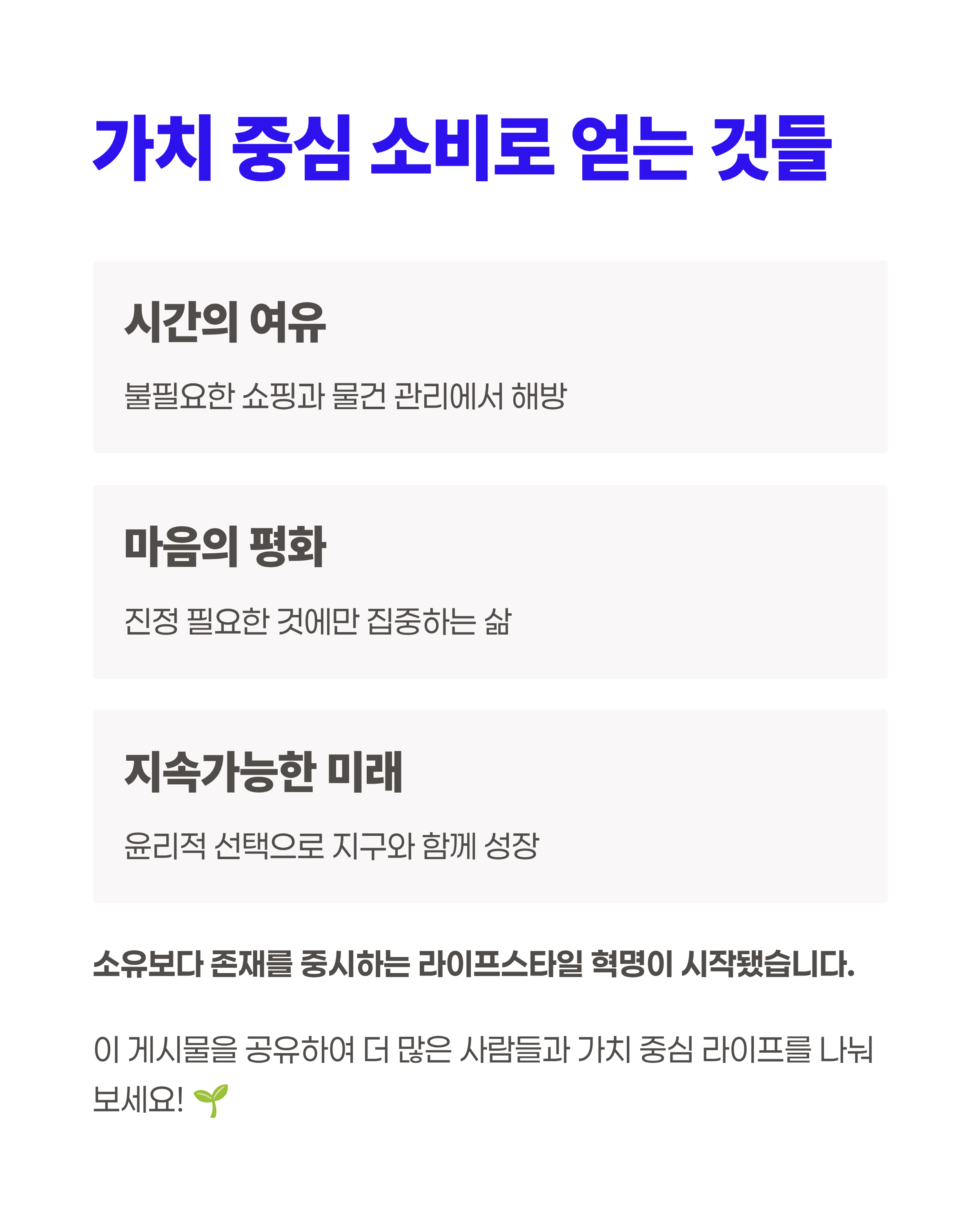 즉흥 구매보다 신중한 소비로 삶의 질을 높이는 방향으로 바뀌고 있습니다.