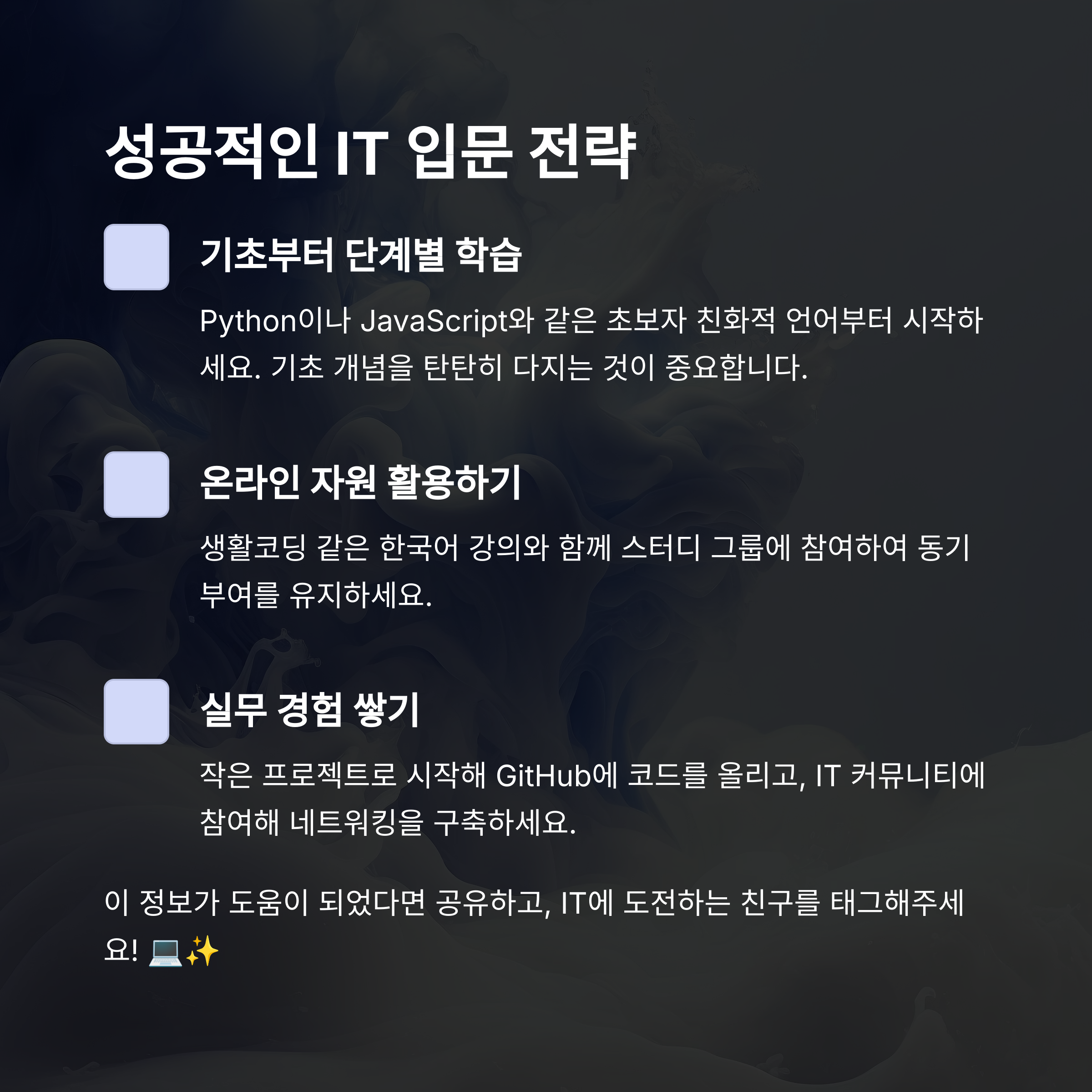 IT 입문자의 현실은 분명 녹록지 않습니다.