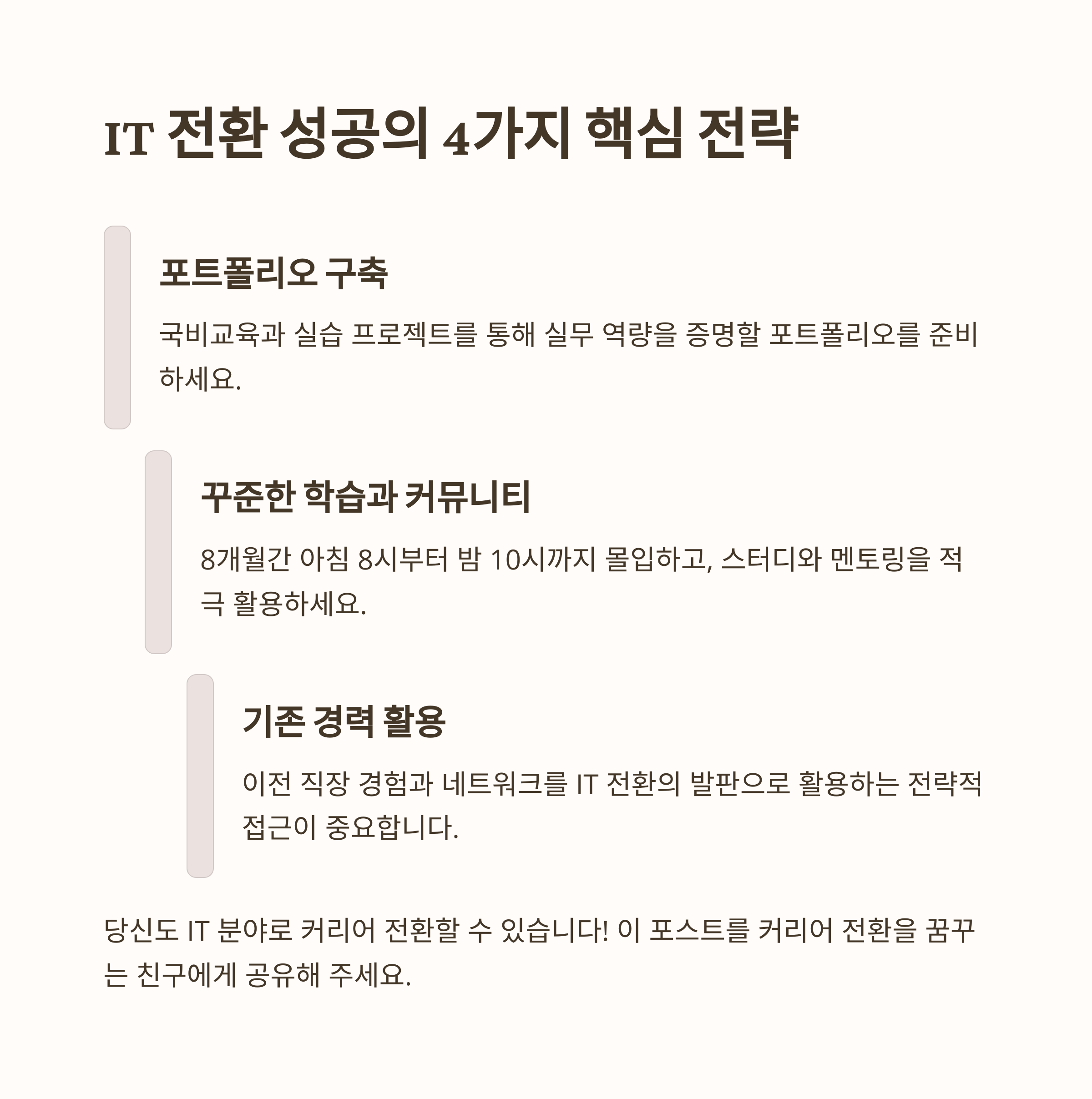 이번 글에서는 실제 IT 직무 전환에 성공한 사례를 바탕으로 어떤 준비와 전략이 필요했는지