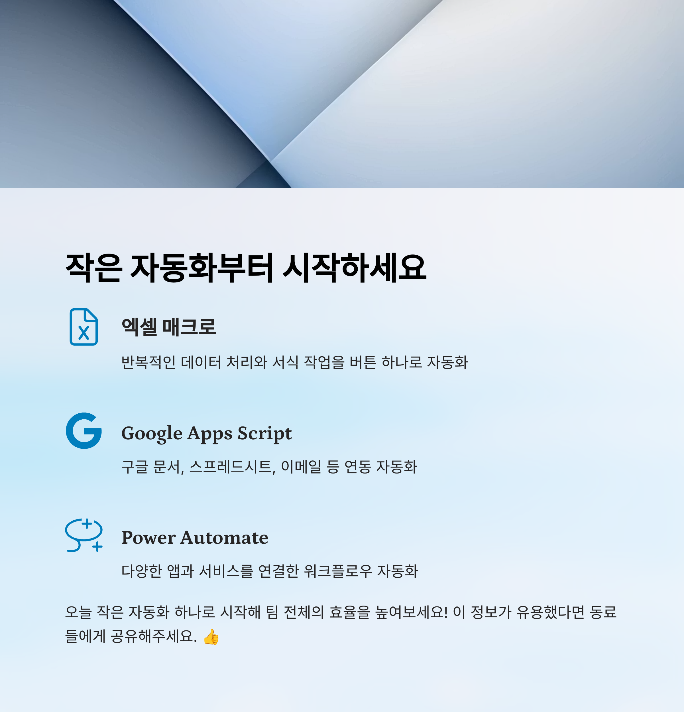 이번 글에서는 직장인이 실제로 적용 가능한 업무 자동화 방법과