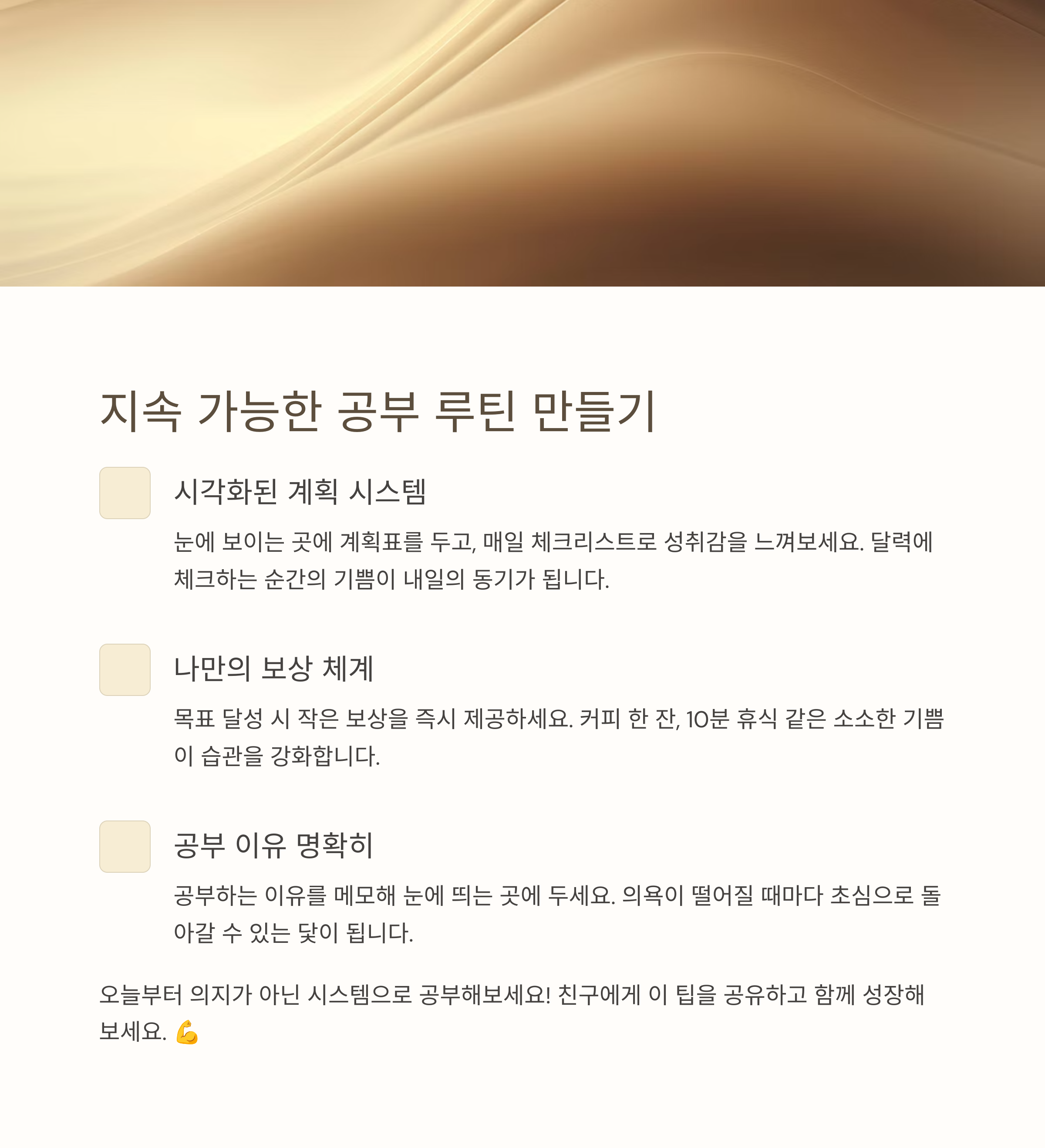 공부는 의지만으로는 지속되기 어렵습니다. 매일 꾸준히 이어가기 위해서는