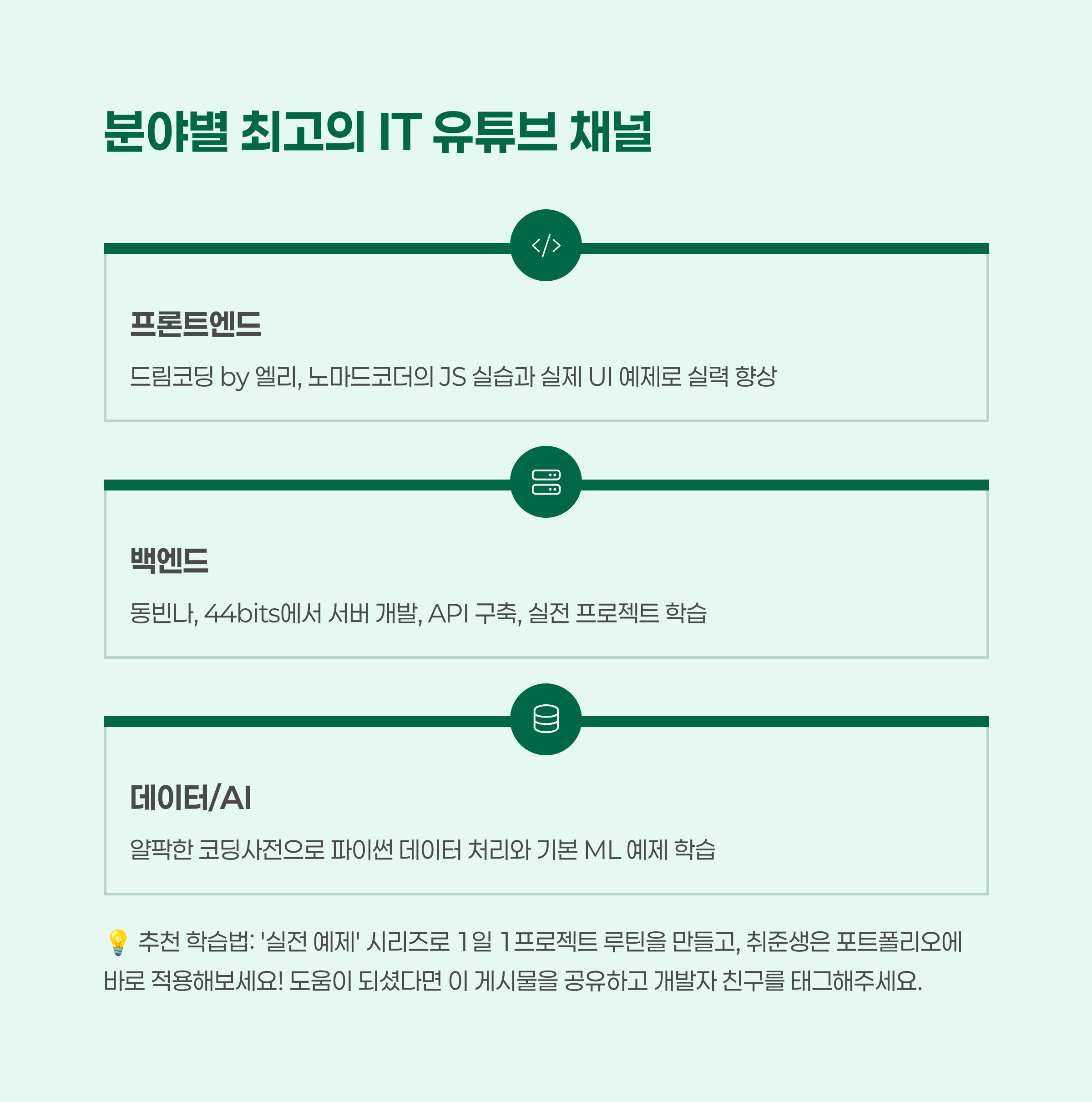 수많은 유튜브 채널 중 실력 향상에 진짜 도움이 되는 채널만 엄선했습니다.